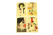浮世絵は紫外線や湿度変化に弱く、正しく保管をしないと変色・シミ・ヤケの原因となってしまいます。保管をする際は作品同士が触れ合わないよう、1枚ずつ奉書紙に挟んで保存しましょう。紫外線や湿度変化に弱いので、風通しの良いクローゼットや物置などで保管をします。定期的な風通しと、調湿剤や防虫剤が必要です。