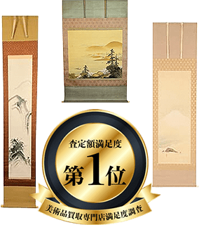 『晩年帰漁』『松竹梅七福神図』『騎龍弁天』『高子観瀑乃図大福』『渓村首夏図』『観音図』などの作品が有名です。コンディションや付属品・銘の有無などにもよりますが、多くの市場で高値買取されています。有名画家の作品は、経年劣化がみられる場合でも比較的高値で取引される傾向です。お引っ越しや遺品整理のタイミングで掛軸などの骨董品の処分が必要になったら、八光堂に一度おみせいただければ幸いでございます。何でもない飾り物だと思っていたお品が、高い価値のある骨董品だったという例はいくらでもございます。当店では無料出張サービスもご利用いただけますので、お気軽にご相談ください。